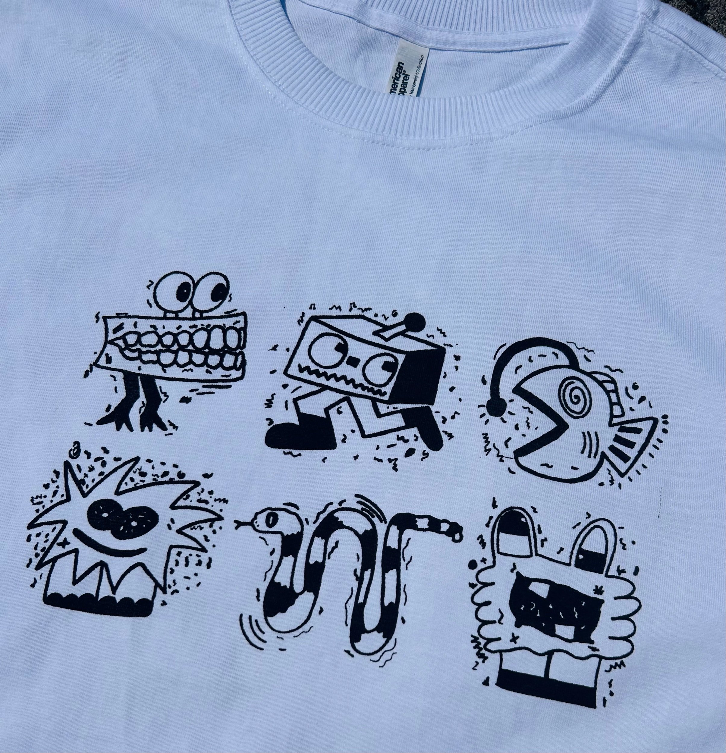 A gritty stencil based design, in a classic black t-shirt and white ink.